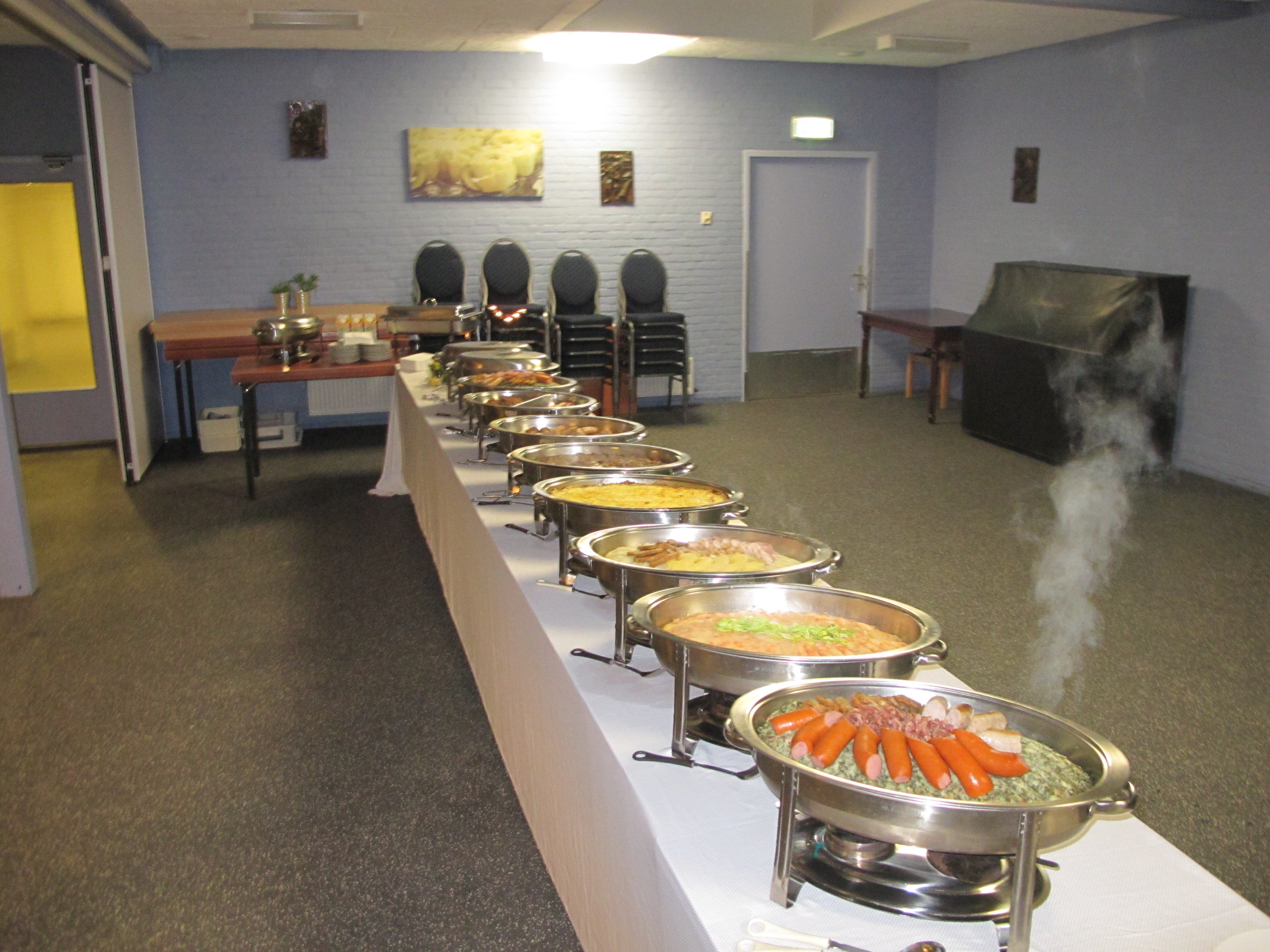 Het is verboden om meegebrachte etenswaren en drinken te nuttigen in het dorpshuis en in de sporthal.